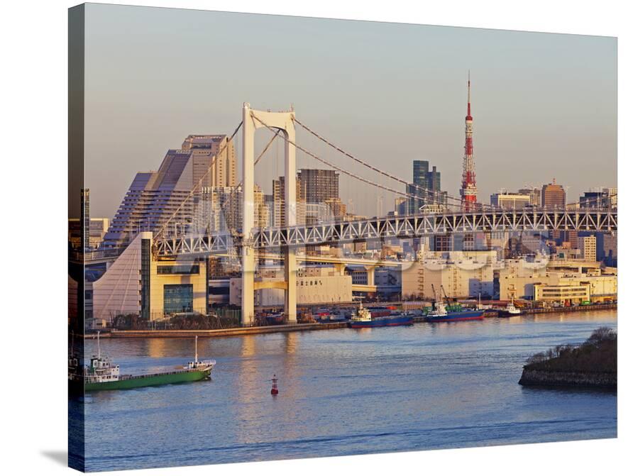 Tokyo Tower Rainbow Bridge Japan Aerial View Of Tokyo Skylines With Rainbow Bridge And Tokyo Tower Over Tokyo Bay Sunset