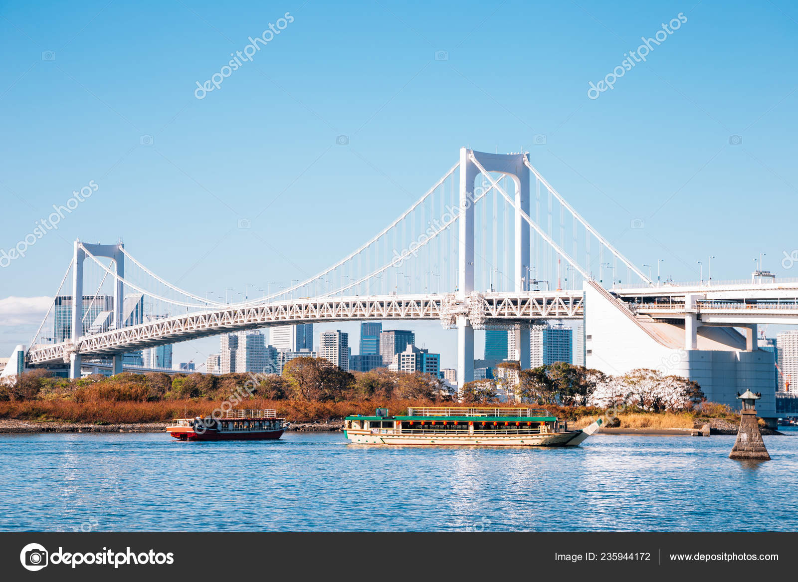 Boats In Tokyo Bay With Rainbow Bridge And Skyline Obaida Tokyo Japan Stock Photo Dissolve