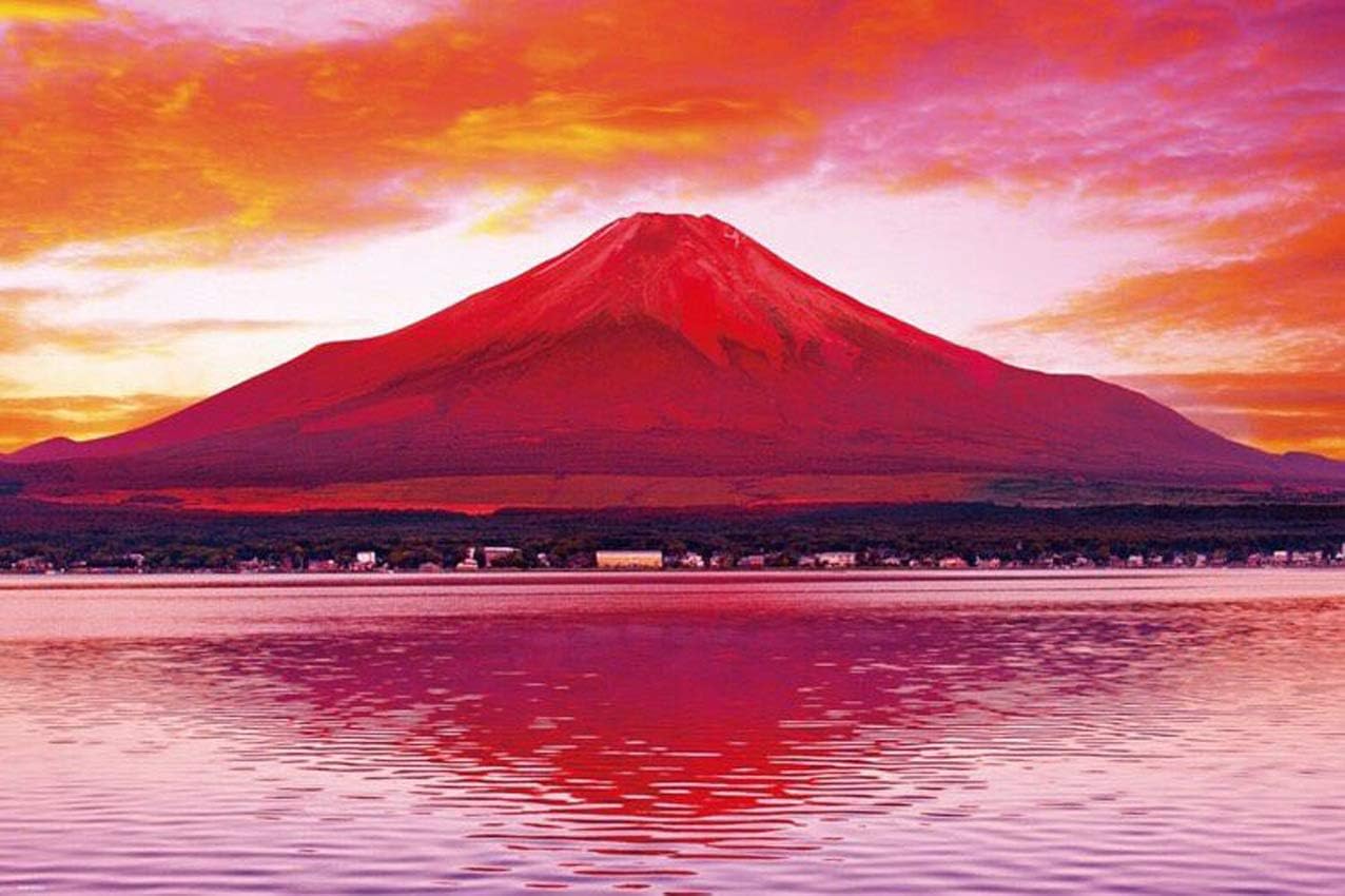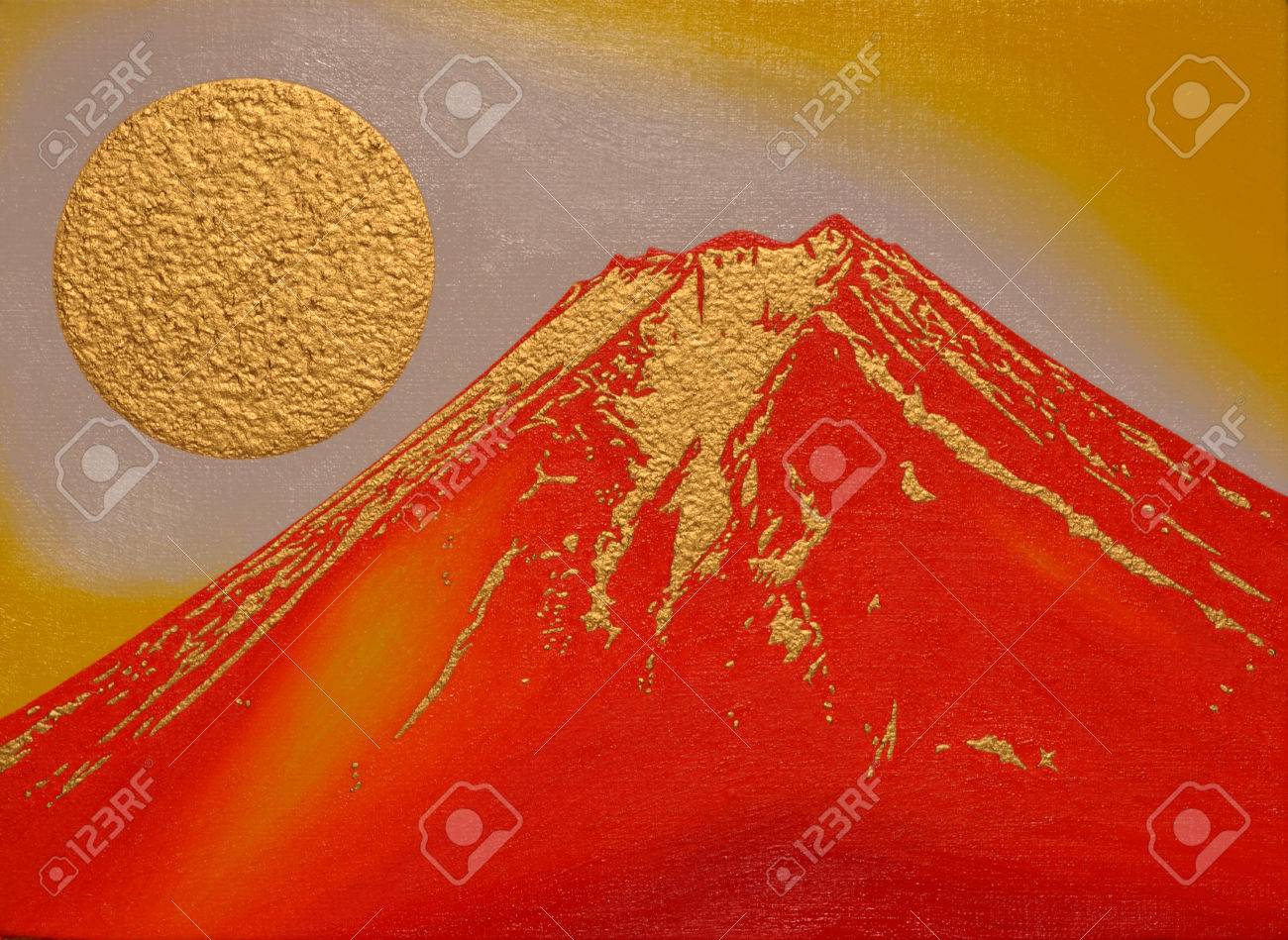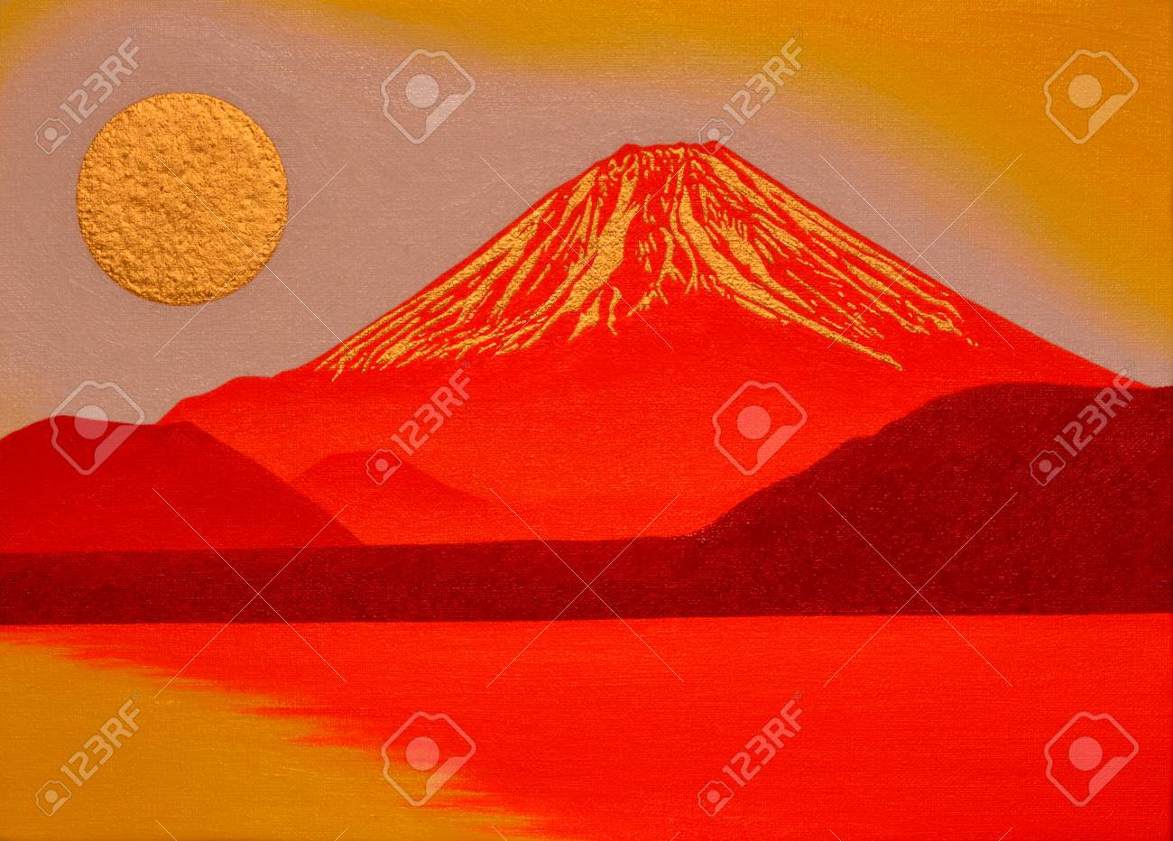 Red Mount Fuji With Gold Sun From Lake Kawaguchi Japan Stock Illustration Illustration Of Kawaguchi Paintings 94636742
