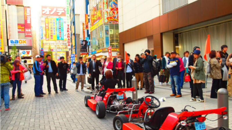 Driving the streets by go kart is one of the most thrilling ways to see tokyos otaku paradise akihabara. With a full tank of gas you can drive the go kart for about 80 kilometers before running outand dont necessarily have to stick to akihabara making this a new and interesting way to explore. Navigate the streets with you guide with ease for wherever your whim takes you and see all the citys famous areas.