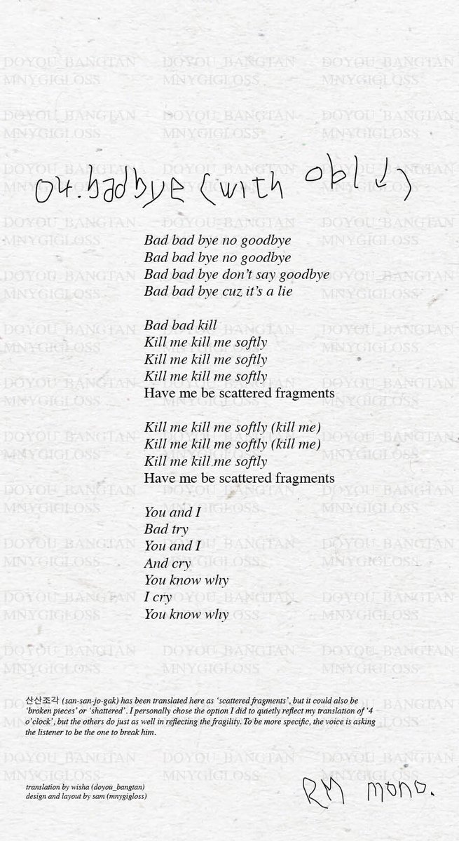 Wisha On Twitter Lyric Translation Thread Of Bts Twt Rm S Mono Please Rt Quote Or Link To The Original Tweet Rather Than Reposting Thank You To Mnygigloss For The Design Layout