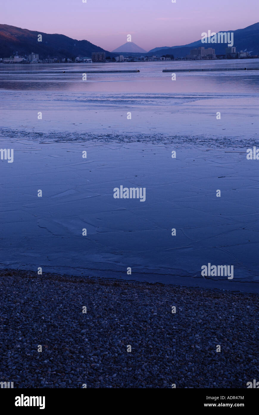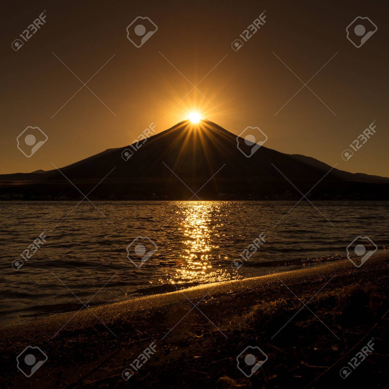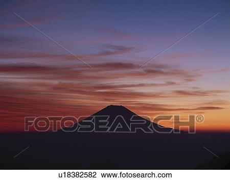 Lake Landscape With Mount Fuji In The Clouds On The Background At Sunset Stock Photo Image Of Lake Japanese 174885588