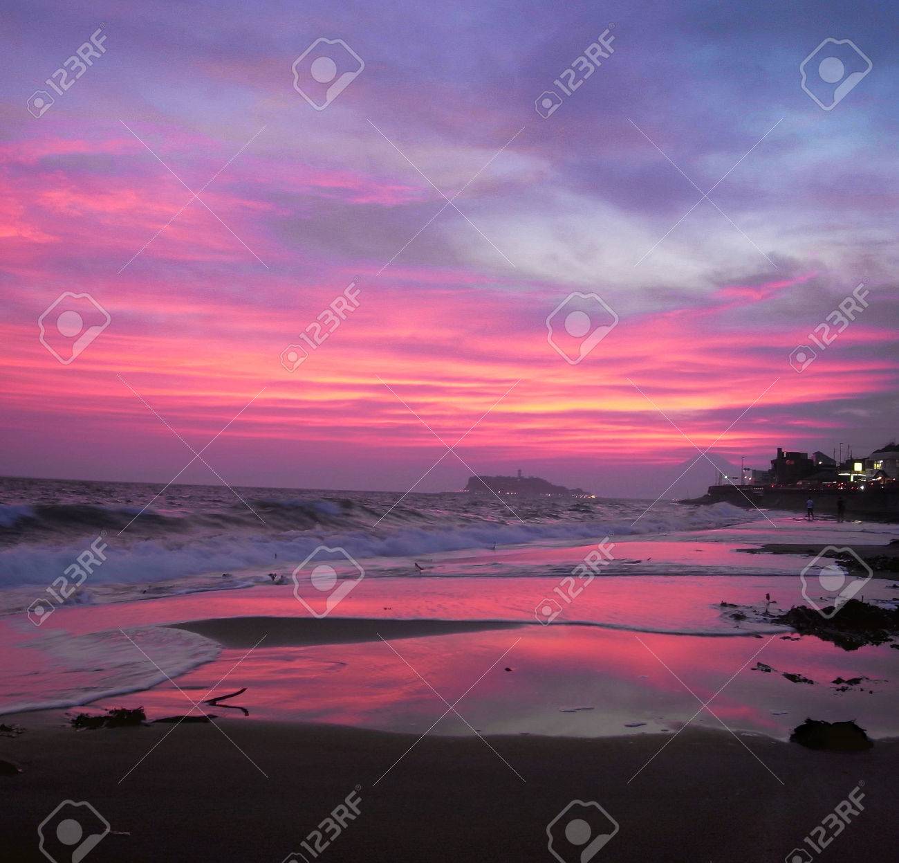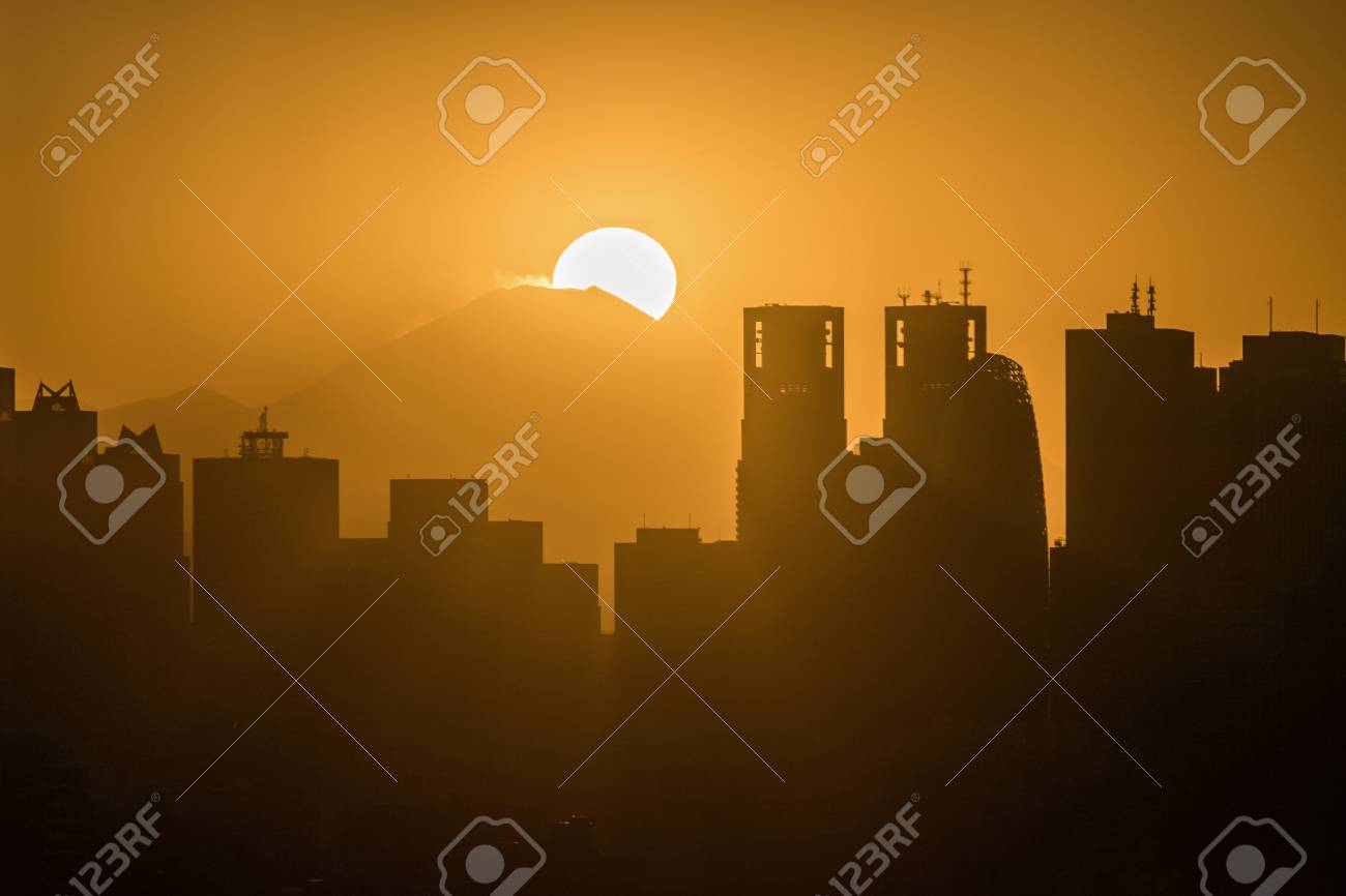 View Of Mount Fuji From Kasai Seaside Park At Sunset Stock Photo Download Image Now Istock