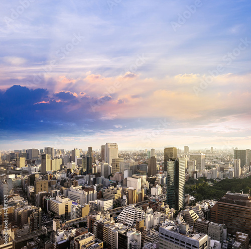 Cityscapes Of Tokyo City Aerial Skyscraper View Of Office Building And Downtown And Street Of Minato In Tokyo With Blue Sly And Clouds Background Japan Asia Buy This Stock Photo And