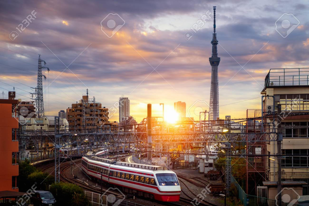 Train In City In Tokyo With Sunset Background Tokyo Japan Stock Photo Picture And Royalty Free Image Image 116524285