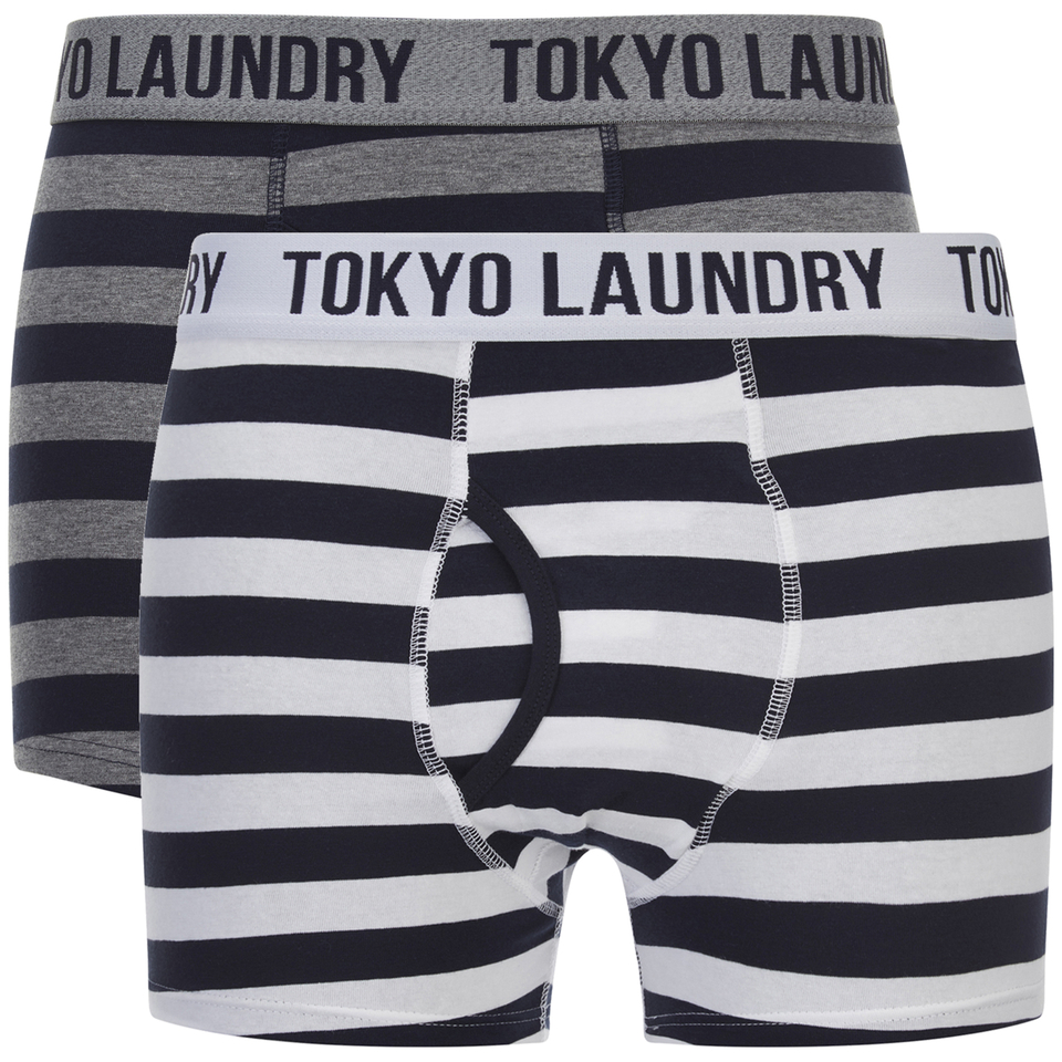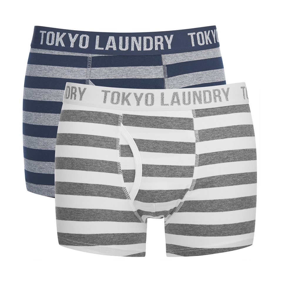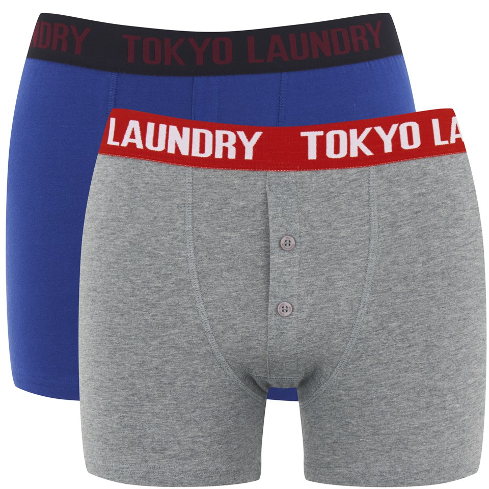 Tokyo Laundry Men S 2 Pack Dwight Boxers Sapphire Mid Grey Marl Mens Underwear Zavvi Us