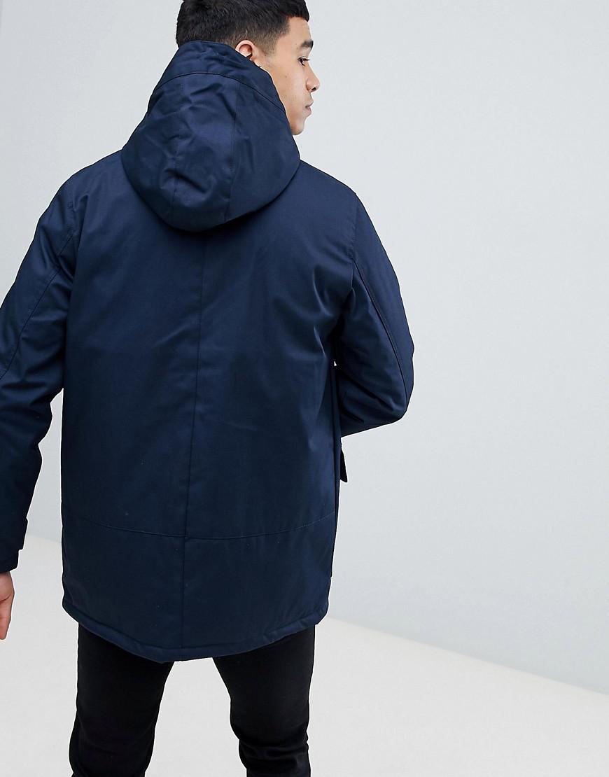 Hjalmar Utility Parka Coat With Fleece Lined Faux Fur Trim Hood In Nav Tokyo Laundry