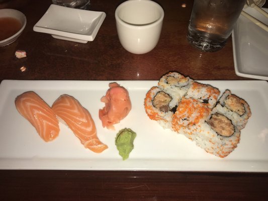 Best of the best diced tuna fresh salmon yellowtail and avocado rolled in soy wrapper served w creamy spicy sauce and topped with tobiko. You will not find a better sushi fix within 10 miles and the next best would also be a mandarin group restaurant. Jumbo shrimp with walnut 1550.