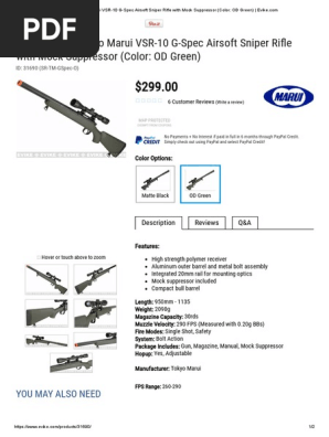 Whether you like to stay back and pick off your targets or run right into the thick of it the tokyo marui vsr 10 g spec bolt action sniper rifle is sure to satisfy all your needs and more. Tokyo marui vsr 10 g spec bolt action airsoft sniper rifle with mock suppressor. Discuss about tokyo marui vsr 10 g spec airsoft sniper rifle with mock suppressor color.