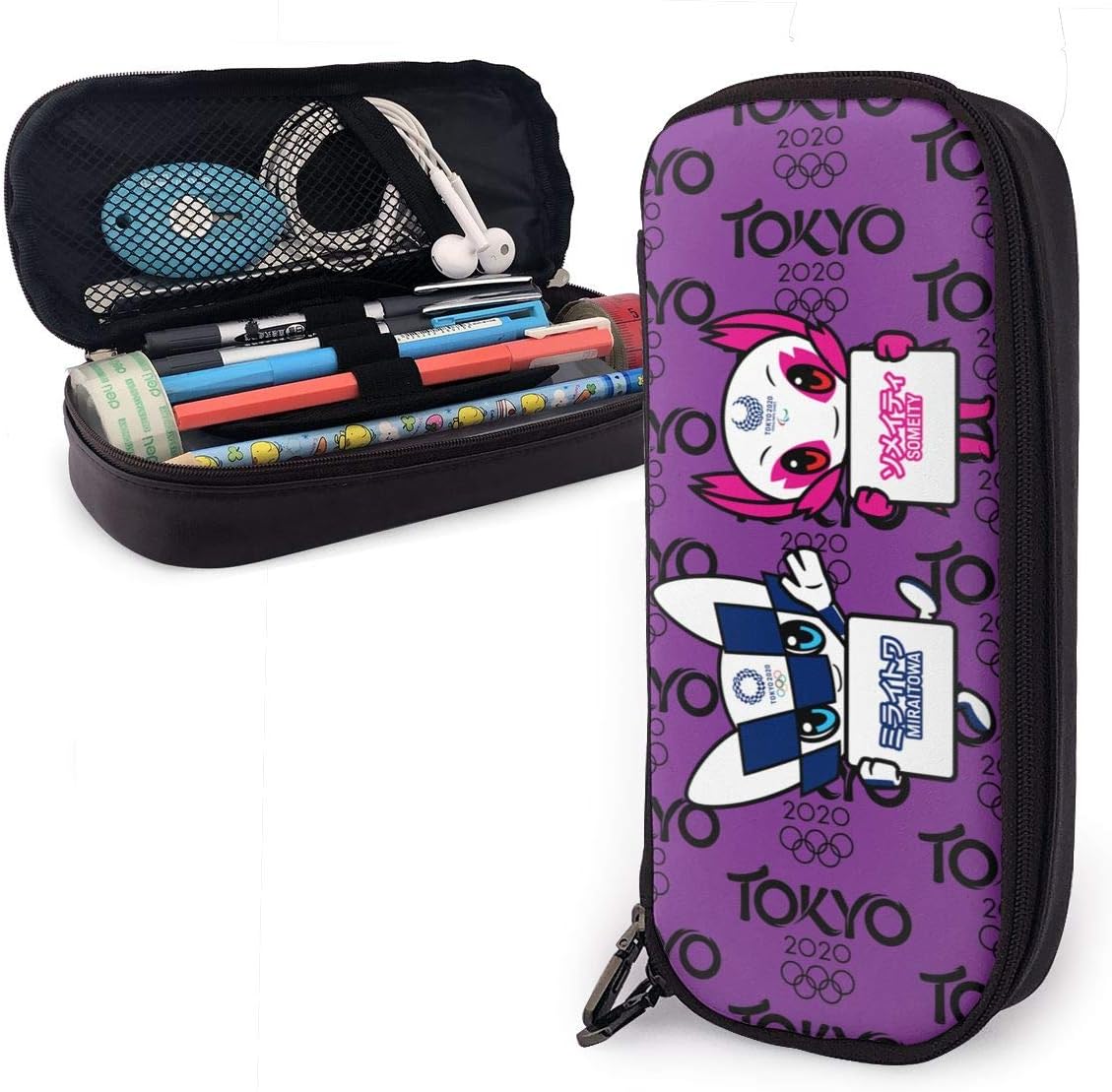 Amazon Com Lhdesign 2020 Tokyo Olympics Mascot Graphics Print School Supplies Leather Pencil Case Big Capacity Small Travel Makeup Pouch Arts Crafts Sewing