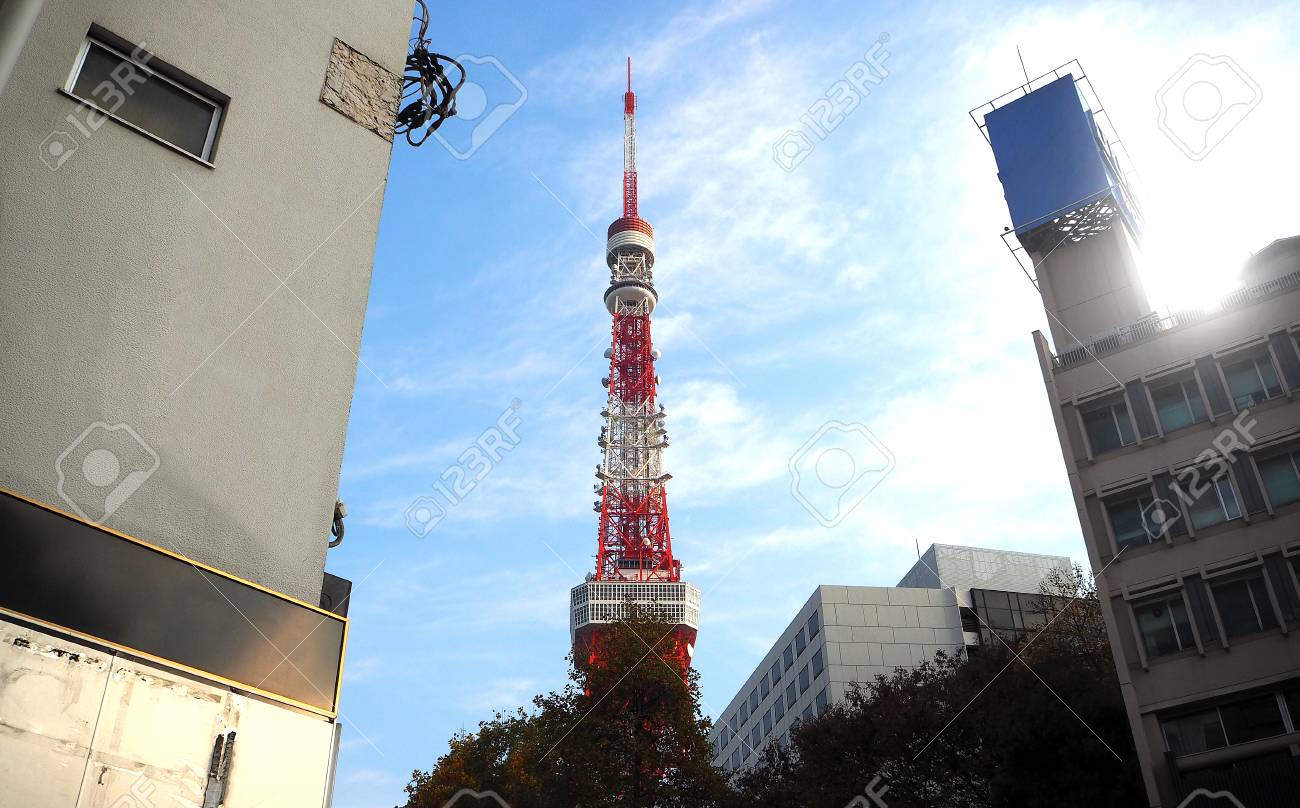 Tokyo Japan Travel High Tower Tv Television Emit Red White Iron Tall Stock Photo Alamy