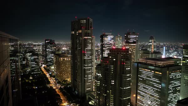 Time Lapse Shot Of Tokyo Cityscape Big City With Skyscrapers Busy Traffic And Night Lights Skyline Stock Video Footage Dissolve