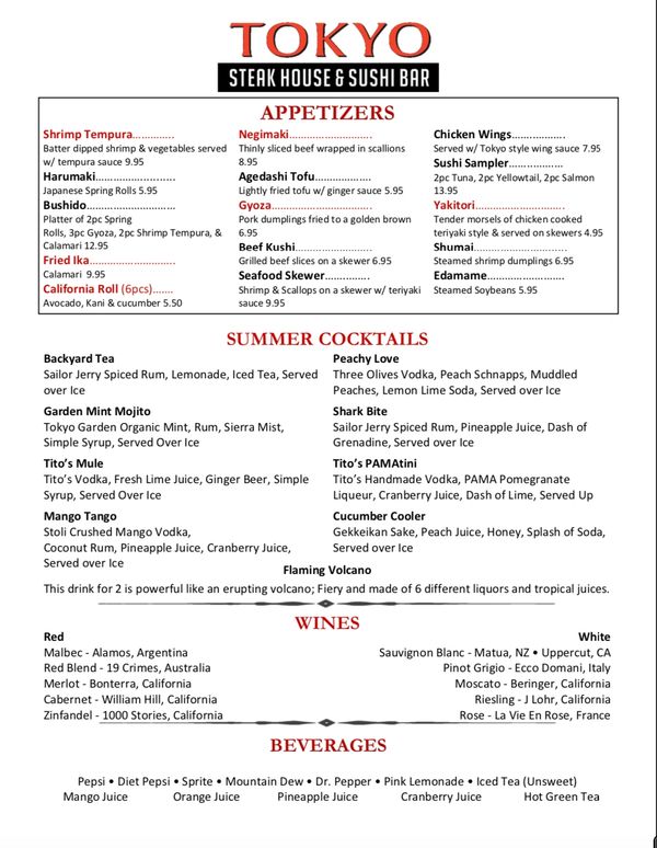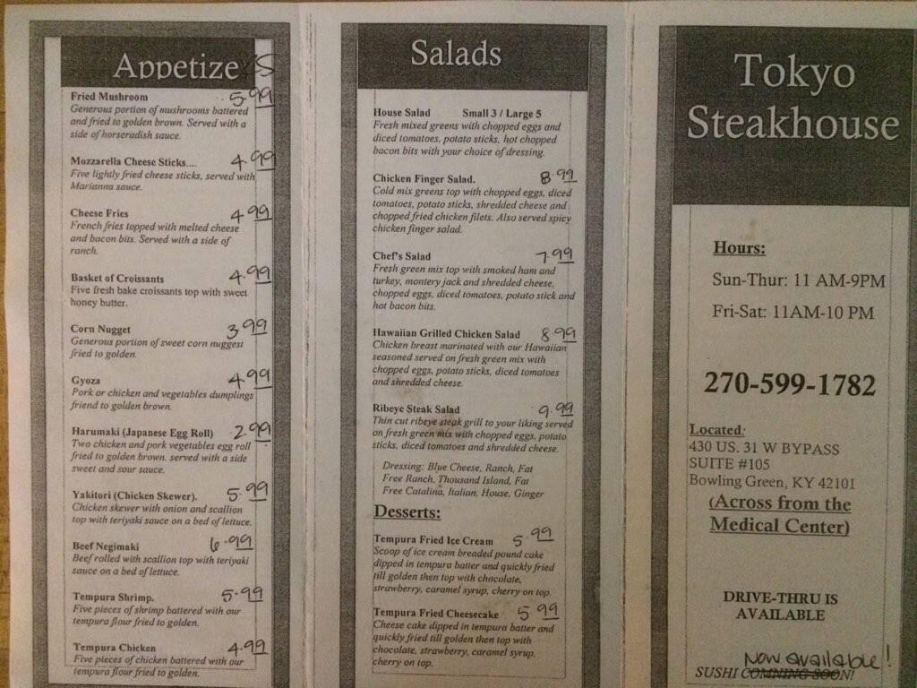 Online Menu Of Tokyo Japanese Steakhouse Restaurant Walla Walla Washington 99362 Zmenu