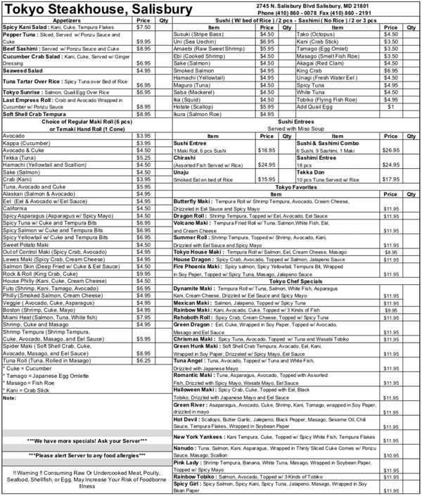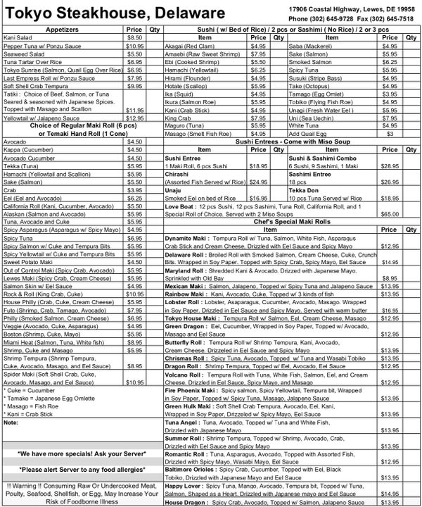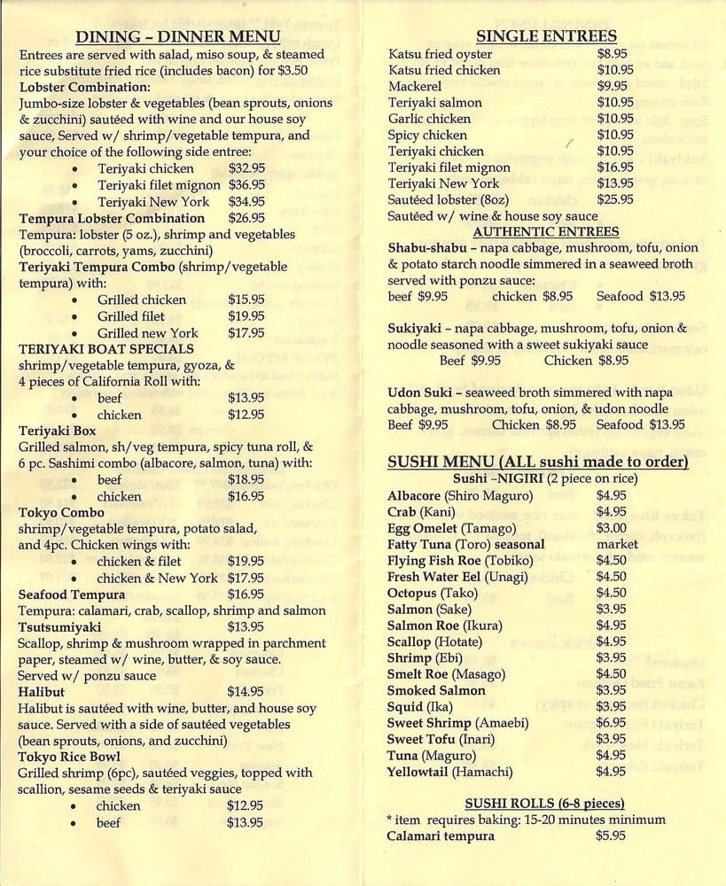 Tokyo Japanese Steak House Hibachi Shabu Sushi Menu Online Order 199 Boylston St Newton
