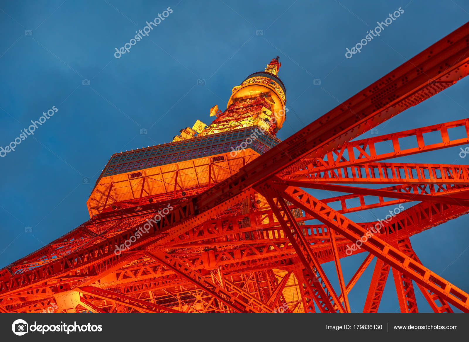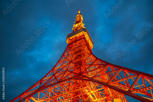 Bottom View Of Tokyo Tower At Night Minato District Tokyo Japan High 333 Meters The Tokyo Tower Is Japan S Second Highest Artificial Structure Popular Landmark And Tourist Attraction Buy This Stock Photo