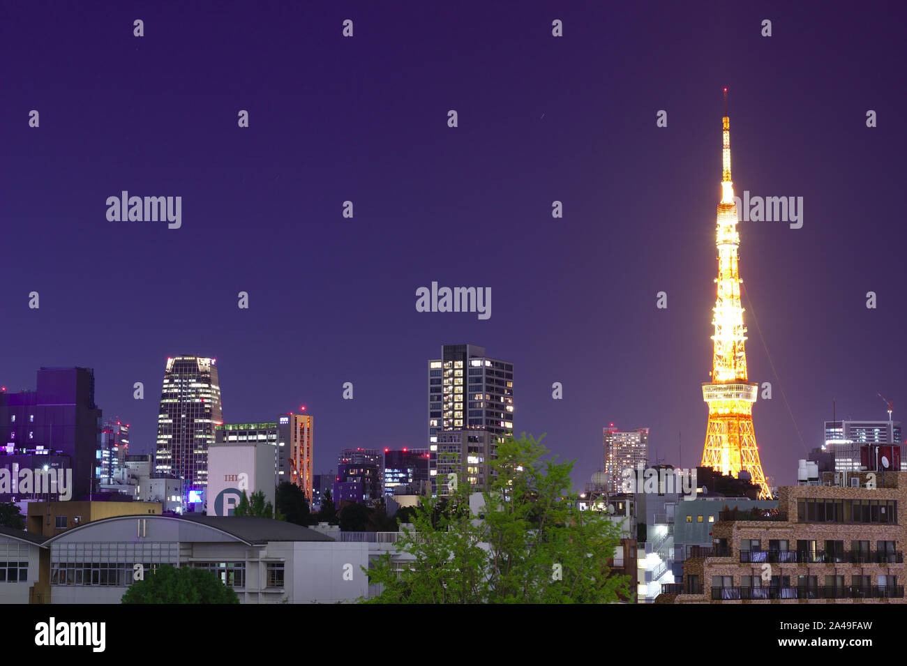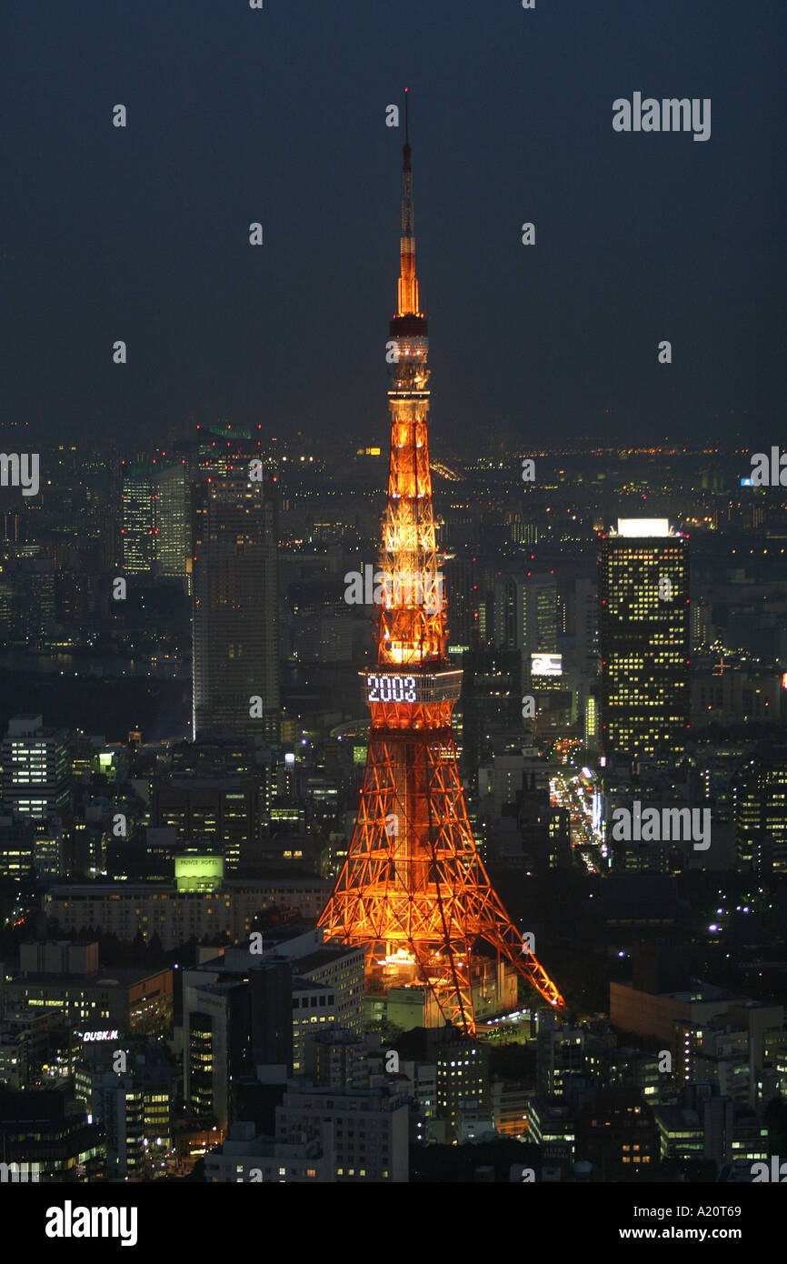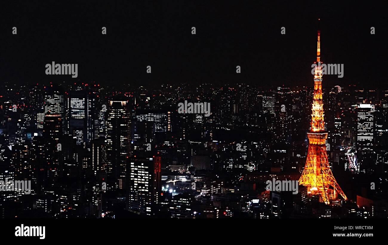 Aerial View Of Tokyo Skyline At Night With Illuminated Iconic Tokyo Tower In Minato District Tokyo Japan Stock Photo Alamy