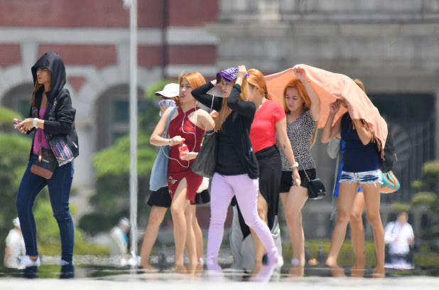 Tokyo Japan 20th July 2018 A Man Walks Past An Electronic Screen Showing Japan S Temperatures On