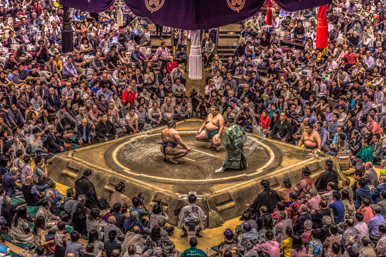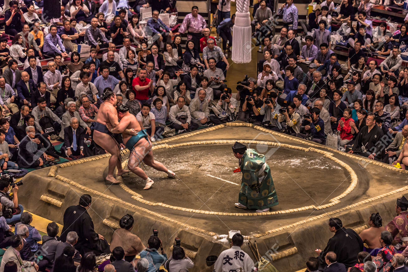Tokyo May 19 2019 Sumo Wrestling Match In The Ryogoku Arena Stock Photo Picture And Royalty Free Image Image 125990933