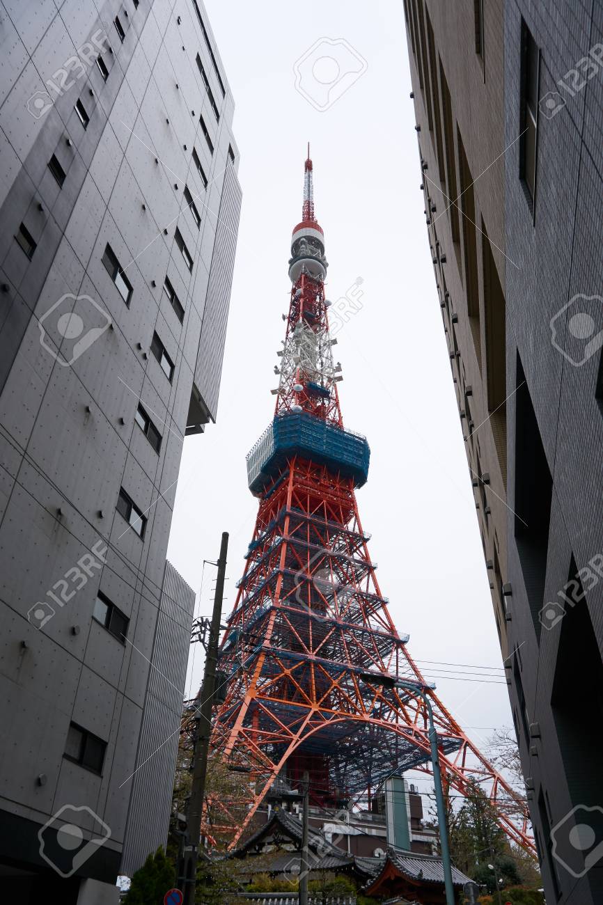 Tokyo Tower Between Two Buildings Stock Photo Picture And Royalty Free Image Image 135347395