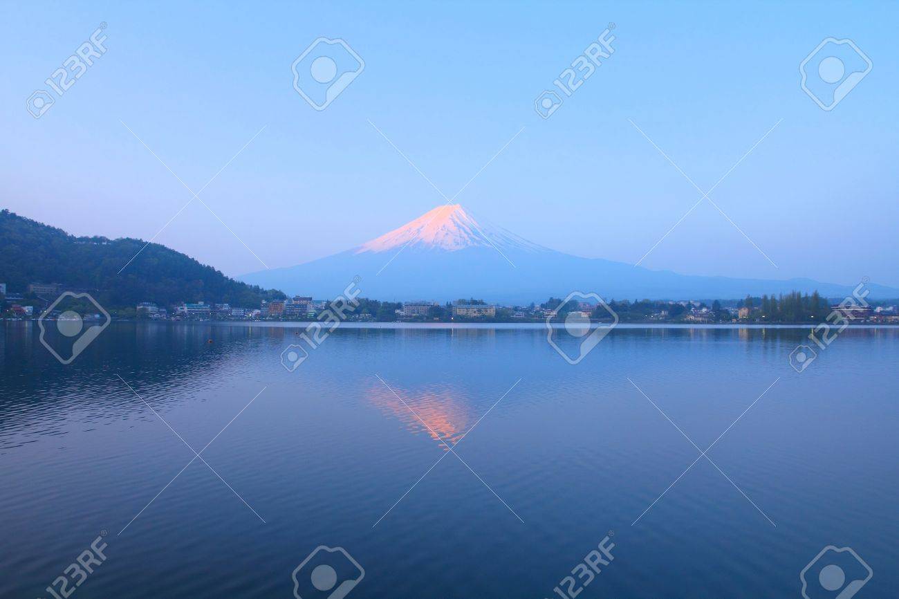 Japan Landscape With Mount Fuji Sunrise Lake Kawaguchi Kawaguchiko Stock Photo Picture And Royalty Free Image Image 23553479